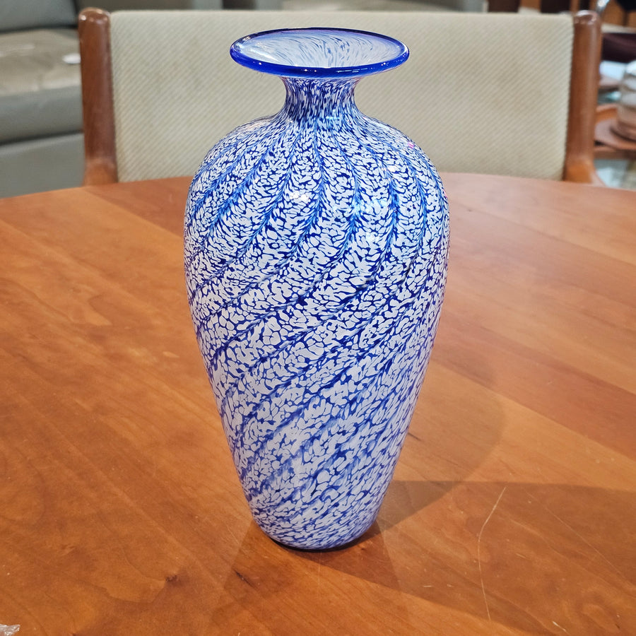 Art Glass Blue & White Vase