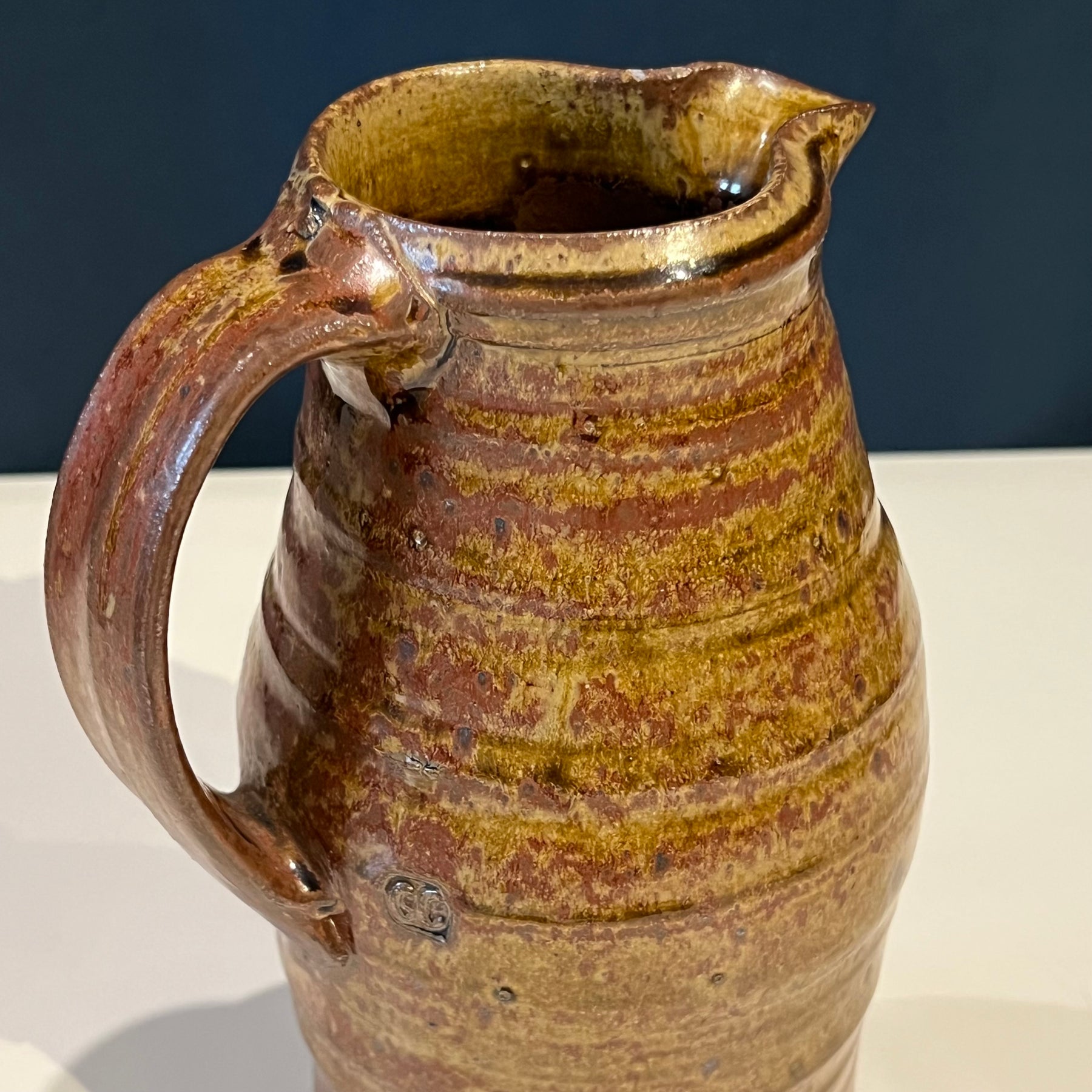 Brown Studio Pottery Ceramic Pitcher, Marked “GC”