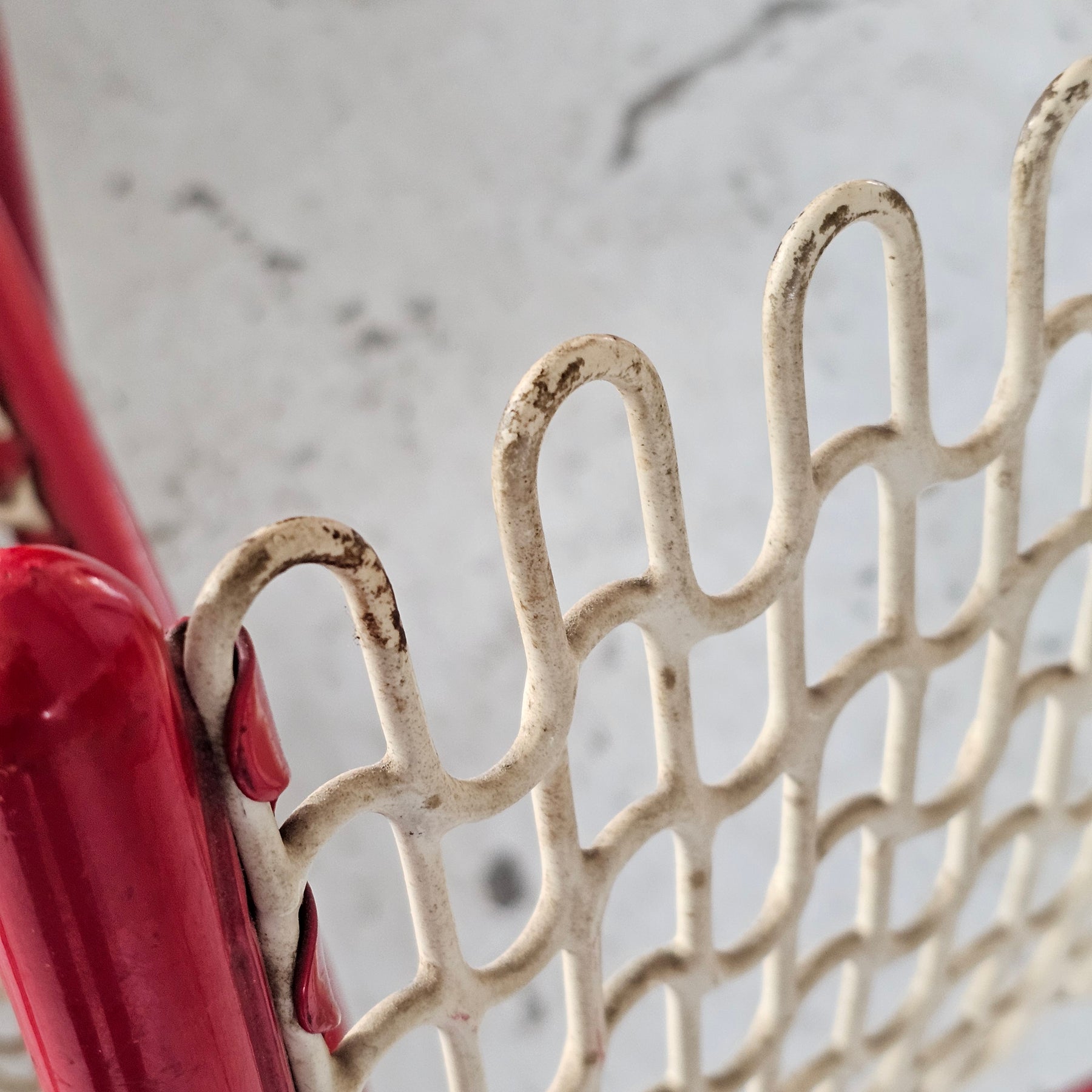 Condition: Shows heavy wear consistent with age/use. The rubberized coating is cracked in multiple areas, but the chair remains structurally sound. Sold as-found.