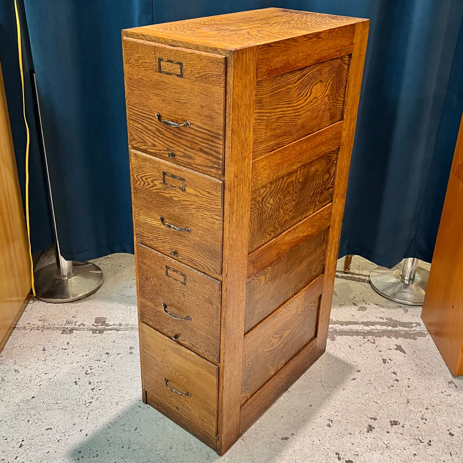 Antique 4-Drawer Oak File Cabinet